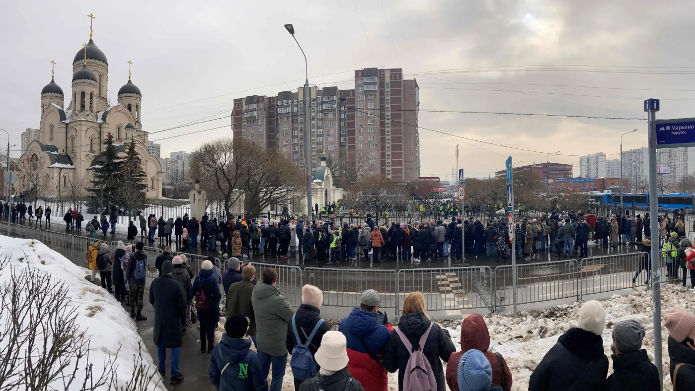 С самого утра у храма «Утоли моя печали» в Марьино, где проходило отпевание, дежурили десятки машин полиции, глушили связь, были установлены металлоискатели и железные ограждения. Тысячи людей, пришедших проститься с Навальным, попасть в храм не смогли.
