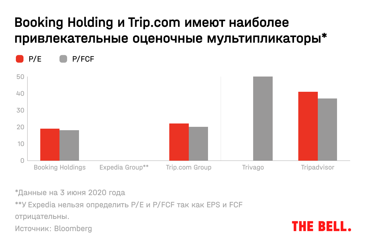 Наш выбор — акции компаний Booking Holdings и Trip.com Group — они имеют наиболее привлекательные оценочные мультипликаторы и подушку ликвидности, которая позволит пережить период спада в отрасли и сохранить лидирующие позиции на рынке.
