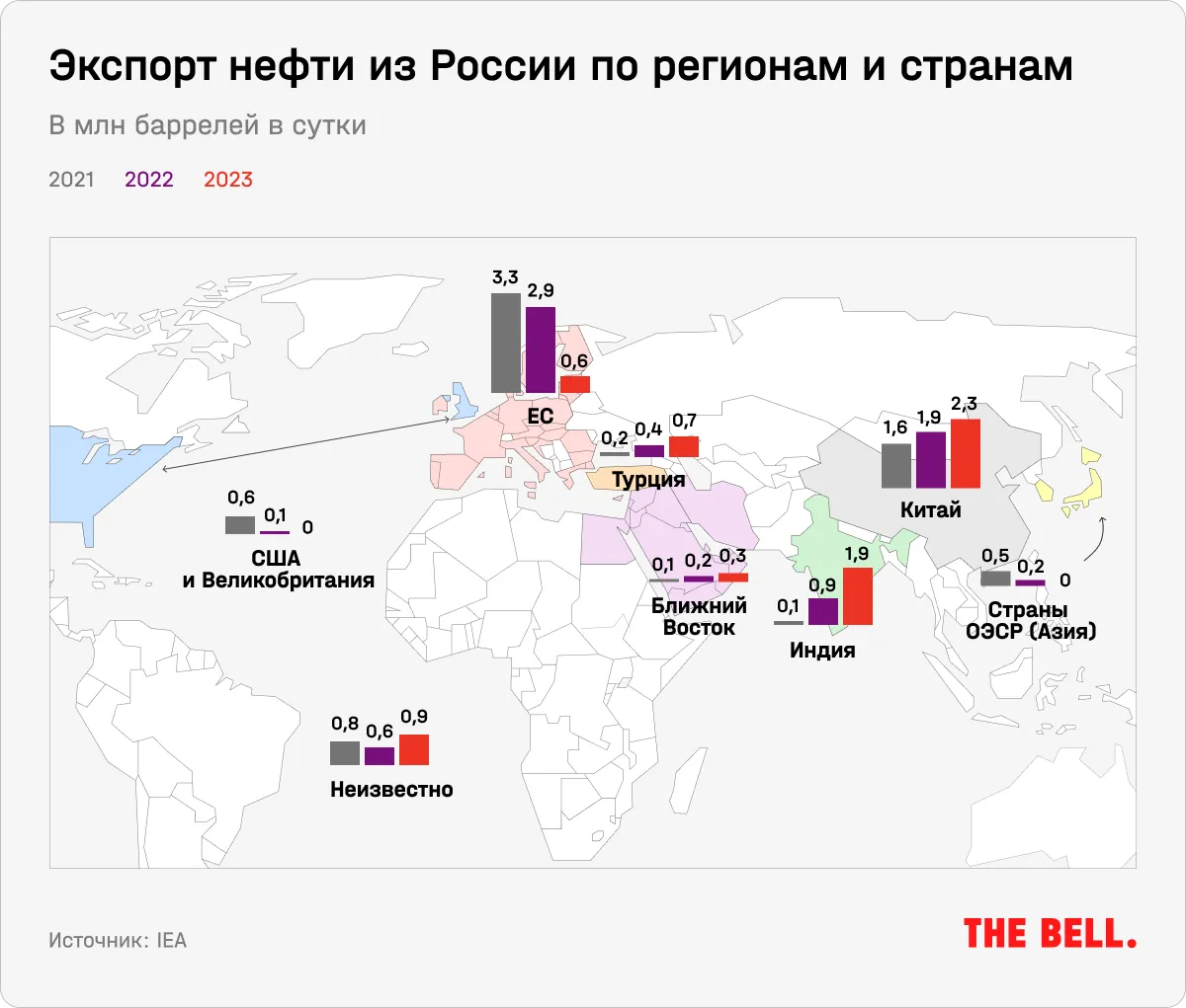 За два года войны российская внешняя торговля претерпела изменения, сравнимые с теми, что произошли в 1990-х. Произошла трансформация логистики и географии импорта и экспорта — это хорошо показано в расчетах, сделанных экономистами Александром Кнобелем и Александром Фиранчуком для издания Econs (графики выше также взяты из этого материала).