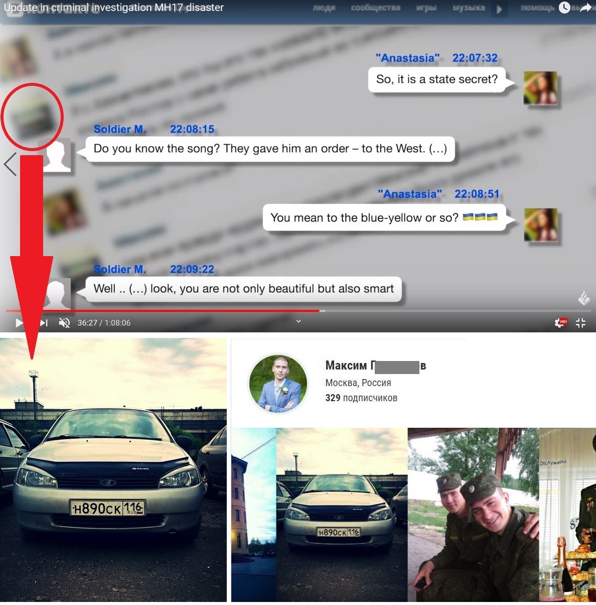 Что мы обнаружили. В кадрах из переписки, показанных на пресс-конференции JIT, показано имя девушки — Анастасия Дорохова — и видны замазанные фотографии профиля собеседников. The Bell удалось найти аккаунт Дороховой «ВКонтакте», а у нее в друзьях — скорее всего, того самого военнослужащего, срочника Максима Г...ва из Альметьевска (Татарстан), служившего летом 2014 года в Курске, где дислоцирована 53-я зенитно-ракетная бригада.