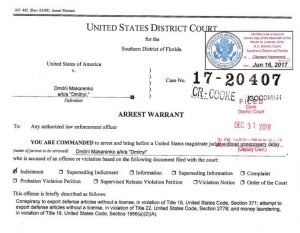 - Макаренко обвиняется в экспорте из США военных технологий без необходимой для этого лицензии, а также в отмывании денег, следует из ордера.