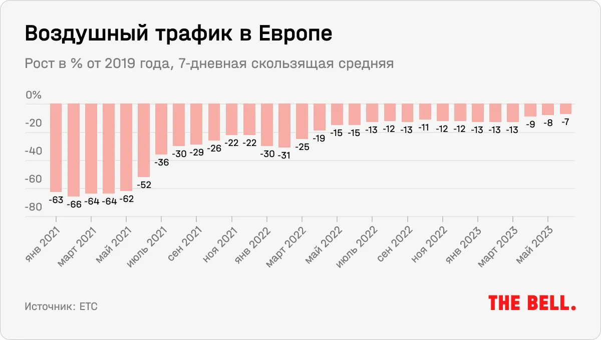 В 2022 году ситуация начала стремительно налаживаться. Согласно данным Международного совета аэропортов (ACI), пассажиропоток всех аэропортов в мире достиг 1,94 млрд человек, что на 98% больше, чем годом ранее, а в ЕС он вырос на 122%. Особенно впечатляющие результаты показали страны с самыми строгими ограничениями на передвижение во времена пандемии, такие как Великобритания (+249%), Ирландия (+235%) и Финляндия (+187%).