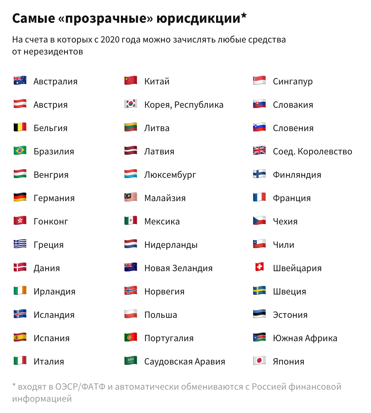 ? В чем подвох: В ОЭСР и ФАТФ не входят многие популярные у россиян направления, в частности Кипр. Поэтому, например, зачислить деньги от продажи квартиры на Кипре можно только на российский счет.