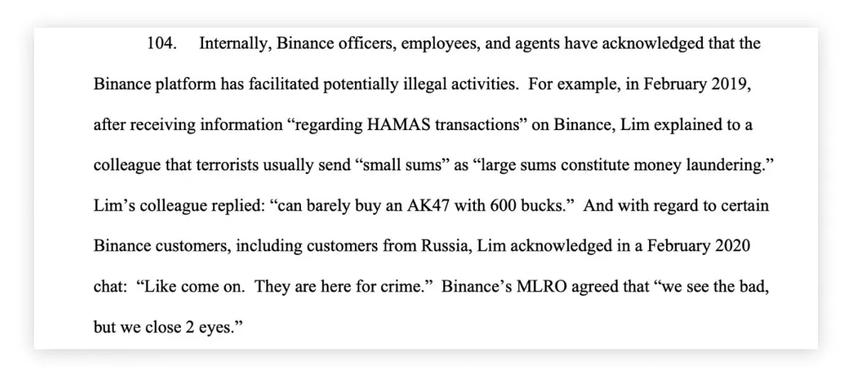 Но Binance и раньше становилась участником скандалов, связанных с криптопереводами в адрес ХАМАС. Например, в судебных документах в рамках разбирательства биржи Комиссией по торговле товарными фьючерсами США (CFTC) был фрагмент внутренней переписки сотрудников от 2019 года. Из него следовало, что сотрудники были в курсе, что некоторые переводы через биржу шли в адрес ХАМАС, но предпочитали закрывать на это глаза, так как речь шла о скромных суммах. «На $600 даже АК-47 не купишь», — иронизировал в переписке один из сотрудников.