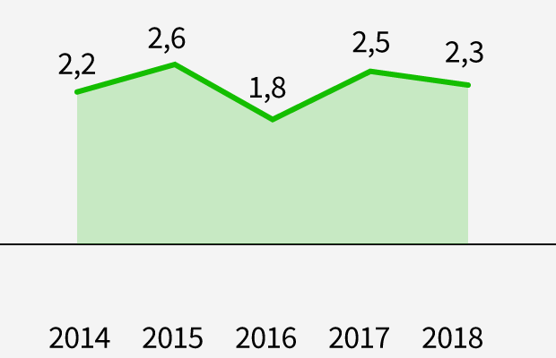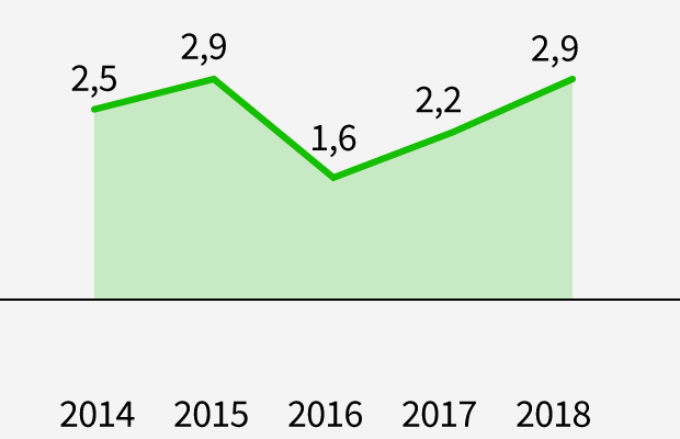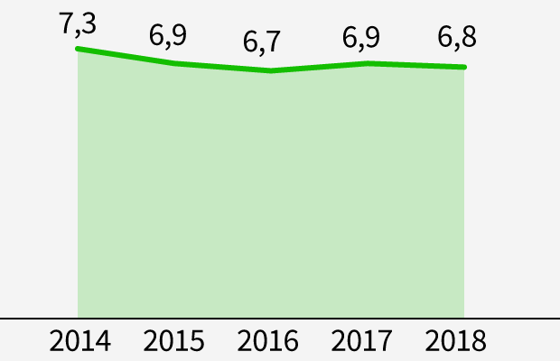 Рост китайской экономики постепенно замедляется на фоне торговой войны в связи с США, а также сокращением инвестиций в инфраструктуру. Тем не менее на фоне российских показателей говорить о снижении кажется некорректным: рост ВВП за пять лет составил 34% (в России — 2,1%).