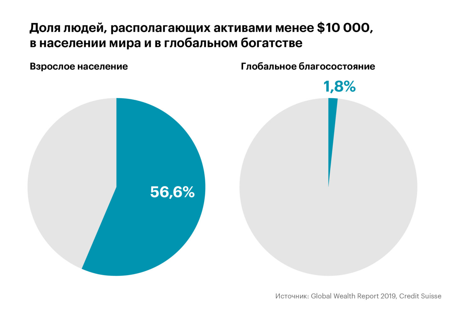 Контекст. Согласно недавнему исследованию Credit Suisse, о мировом богатстве проблема стоит остро не только в США. Из него следует, что 46,8 млн человек или 0,9% от всего взрослого населения Земли владеют суммарно активами в размере $158,3 трлн — это почти половина (44%) глобальных активов.