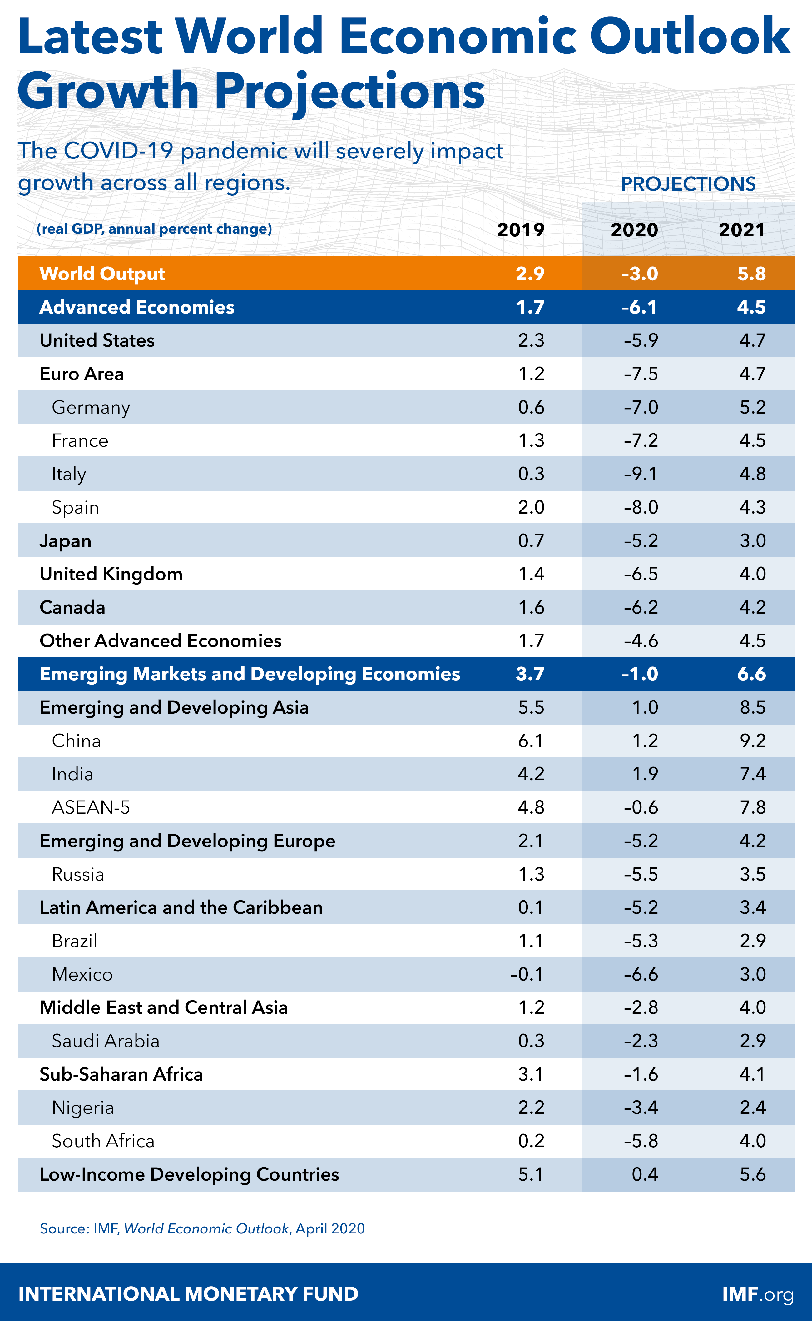 Экономисты МВФ называют этот кризис Great Lockdown (большой карантин) и не случайно сравнивают его с Великой депрессией — в 2020 году впервые с 30-х годов прошлого века ожидается падение одновременно и развитых, и развивающихся экономик.