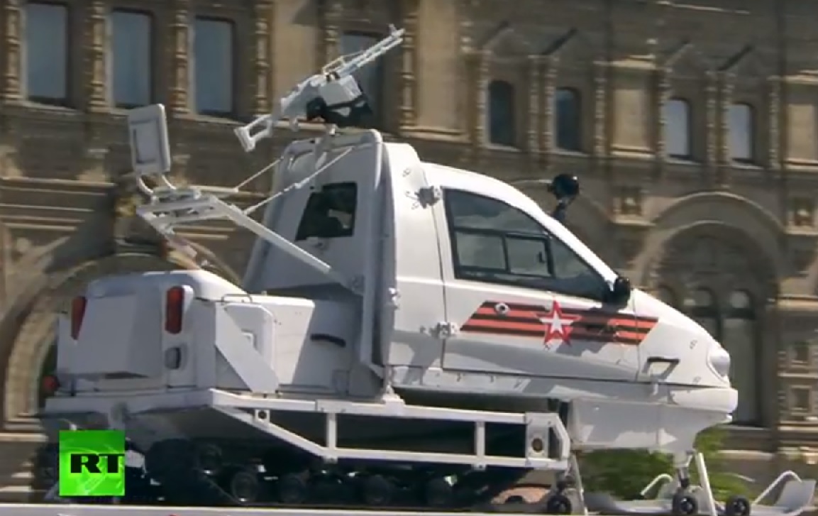 - На платформе был провезен гусеничный снегоход «Беркут».