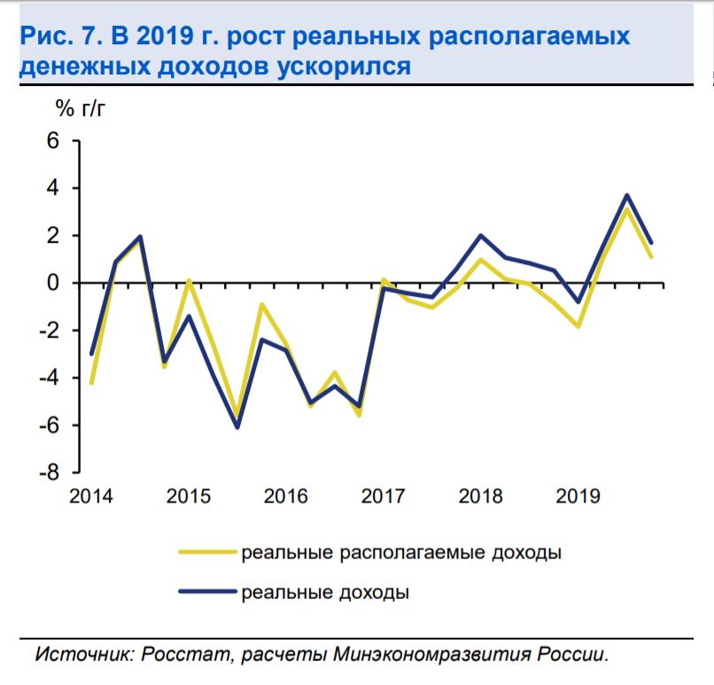- В этом году Минэкономики ждет резкого ускорения роста доходов населения. Последний прогноз, опубликованный в августе 2019-го, предполагал рост этого показателя в 2020-м на 1,5% за счет «усиления экономического роста и инвестиционной активности».