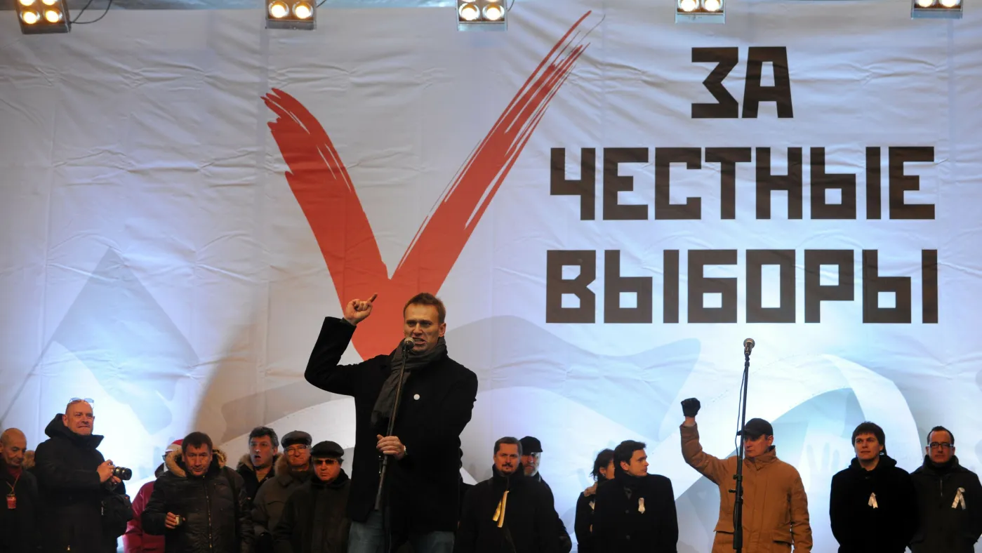 Алексей Навальный выступает на митинге против фальсификации парламентских выборов на Проспекте Сахарова в Москве, 24 декабря 2011 года.