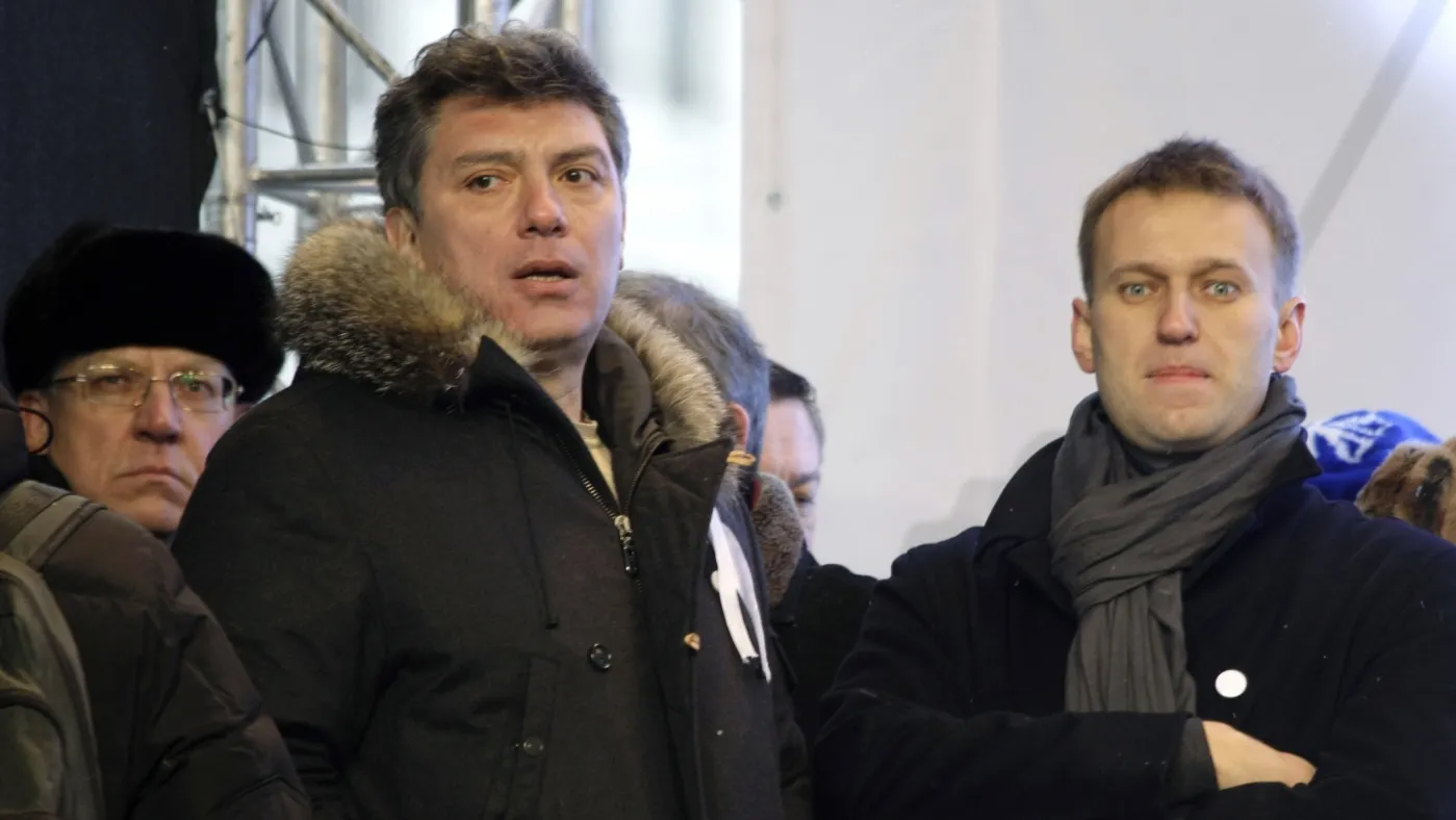 Бывший министр финансов России Алексей Кудрин, лидеры оппозиции Борис Немцов и Алексей Навальный на митинге в знак протеста против фальсификаций результатов голосования на российских парламентских выборах на проспекте Сахарова в Москве. Россия, 24 декабря 2011 года.