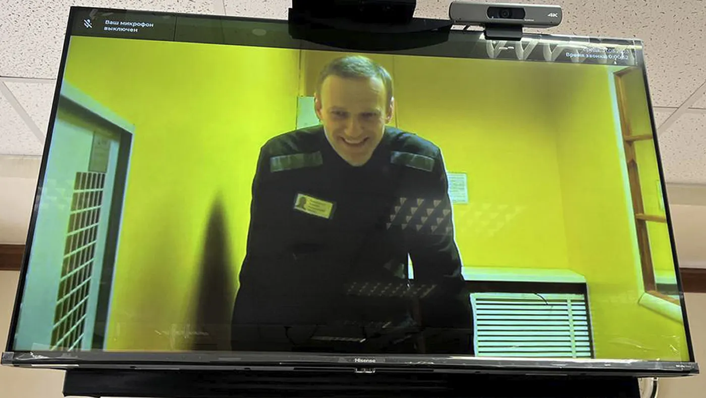 Алексей Навальный выступает по видеосвязи в мае 2023 года.