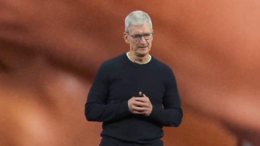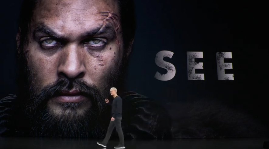 Тим Кук объявляет раздел презентации, посвященный платному стримингу TV+ — конкуренту Netflix. Он представляет первый официальный трейлер сериала See, действие которого разворачивается в далеком будущем, когда все люди потеряли возможность видеть.