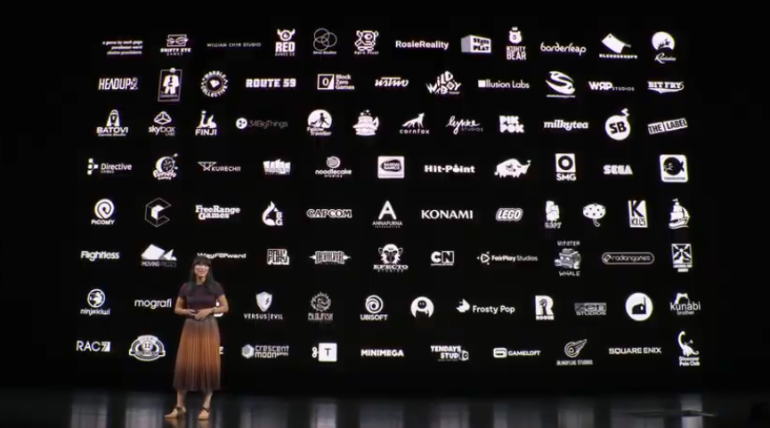 Первый анонс — Apple Arcade, подписной игровой кросс-платформенный (iOS и macOS) сервис. Все игры — эксклюзивы. Konami предлагает для сервиса улучшенный трехмерный Frogger с хорошей поддержкой физики.