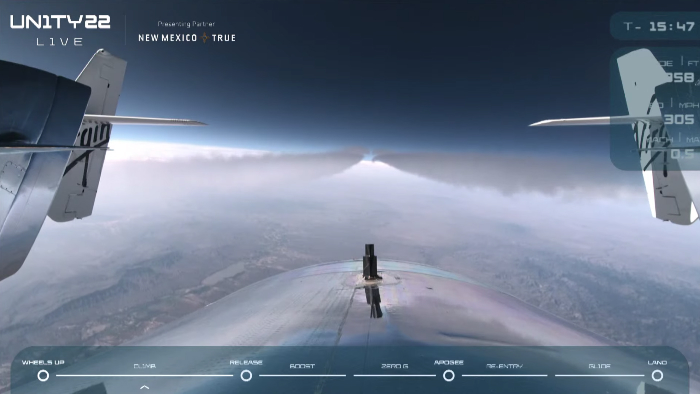 Ракетоплан VSS Unity отправился в суборбитальный полет на высоту около 88 км. Изначально запуск был запланирован на 16:00 по московскому времени, однако старт был отложен на полтора часа из-за погодных условий.