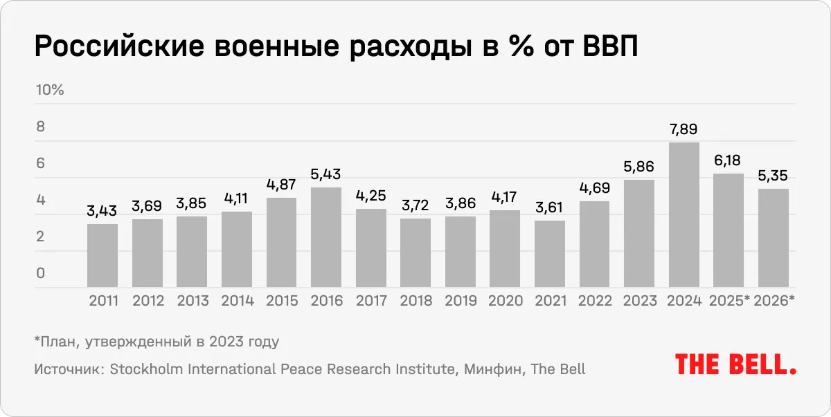 Российское правительство начинает первые обсуждения параметров федерального бюджета на будущий год. Год назад, при утверждении огромных военных расходов в 6% ВВП на 2024 год, правительство исходило из того, что в 2025-м цифры вернутся в норму, а к 2026 году военные расходы снизятся на треть. Но с учетом затягивающейся войны, а главное — окончательного военного перерождения российской экономики похоже, что этого не случится.