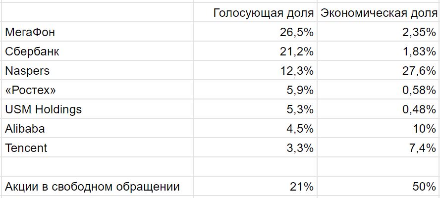 - Новое соглашение предполагает возможность выкупа Сбербанком 20% акций самой Mail.Ru Group. Если речь об обыкновенных акциях, то такая доля соответствует 8,4% голосующих прав. Если предположить, что сделка 2022 года состоится, а в остальном структура акционерного капитала останется неизменной, «Сбер» может получить в сумме около 22% экономической доли и 29,6% голосов в Mail.Ru Group. Каким образом и у кого из акционеров банк сможет выкупить акции, в сообщении не уточняется.