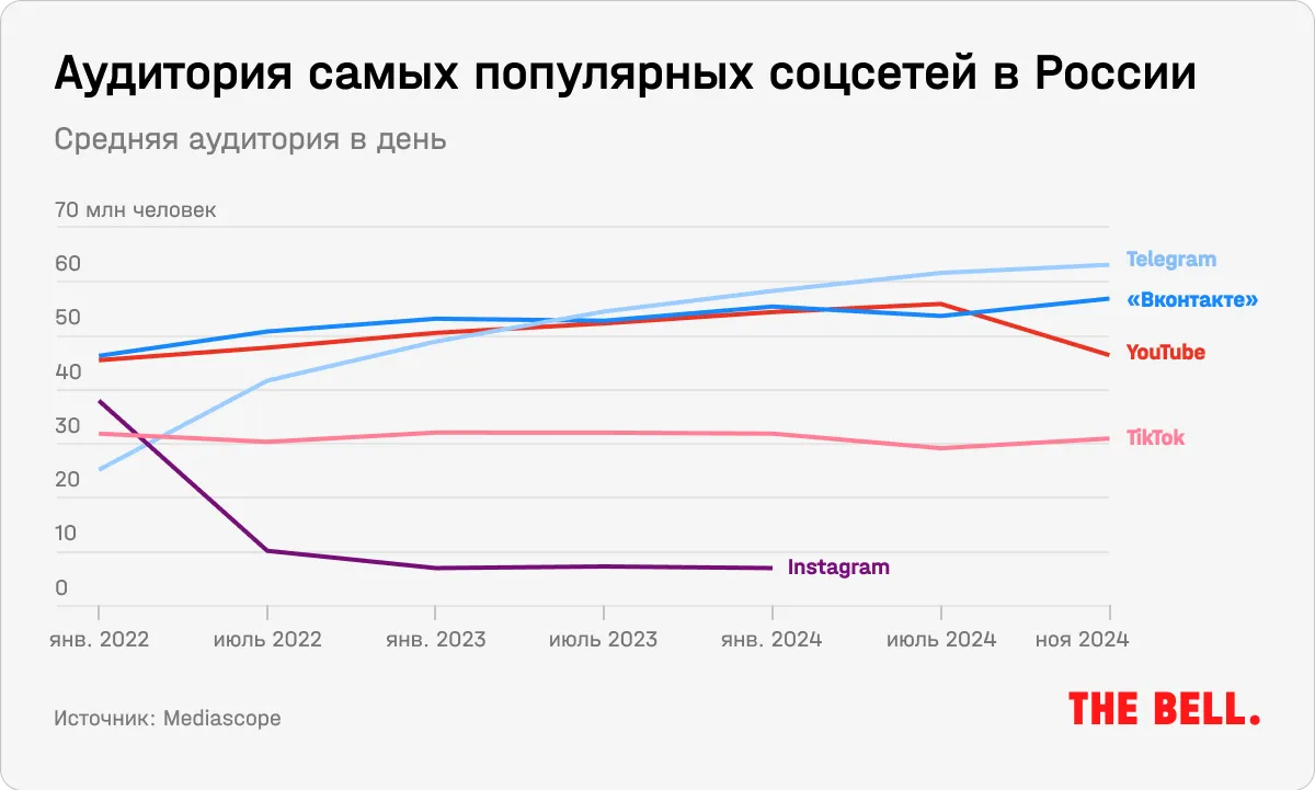 Из-за всех этих проблем VK не удается переманить блогеров и аудиторию не только из YouTube, но даже из заблокированного еще в 2022 году Instagram (его материнская компания Meta признана в России экстремистской). Например, Ольга Бузова, у которой сейчас 24,4 млн подписчиков в Instagram, во «ВКонтакте» смогла собрать только 1,1 млн. У Оксаны Самойловой 16,6 млн подписчиков в американской соцсети против 923 тысяч во «ВКонтакте».