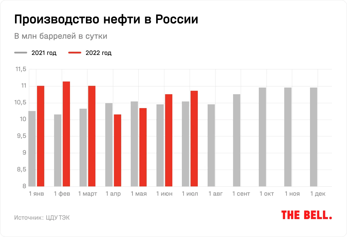 Основные проблемы будут в следующем году. Вступление в силу эмбарго означает, что половину нефтяного экспорта, которая приходилась на Европу, надо будет перенаправить, а с этим будут сложности. В первые две недели августа среднесуточная добыча нефти в России упала на 3% месяц к месяцу. Морской экспорт нефти из российских портов в Азию, по данным Bloomberg, в августе уже снижается три недели подряд. Это вызывает опасения, что азиатский регион уже насыщен российской нефтью и не может принять дополнительные объемы.