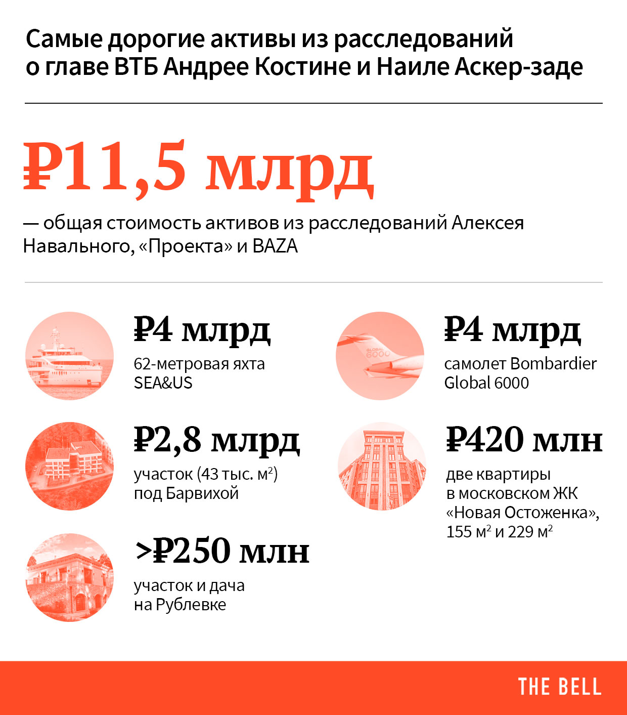 Расследование Алексея Навального об Андрее Костине и Наиле Аскер-заде собрало 3,7 млн просмотров за три дня. Фигуранты его не комментируют, некоторые СМИ игнорируют, зато в соцсетях разгорелись жаркие споры. The Bell объясняет, что нового узнал, что не сумел доказать и в чем ошибся Навальный.