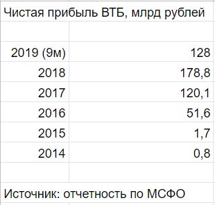 Как на самом деле. Согласно отчетности, в обозримом прошлом ВТБ показывал прибыль каждый год, хотя в 2014–2015 годах она и была чисто символической из-за резкого увеличения резервов, связанного с санкциями и конфликтом России с Западом.