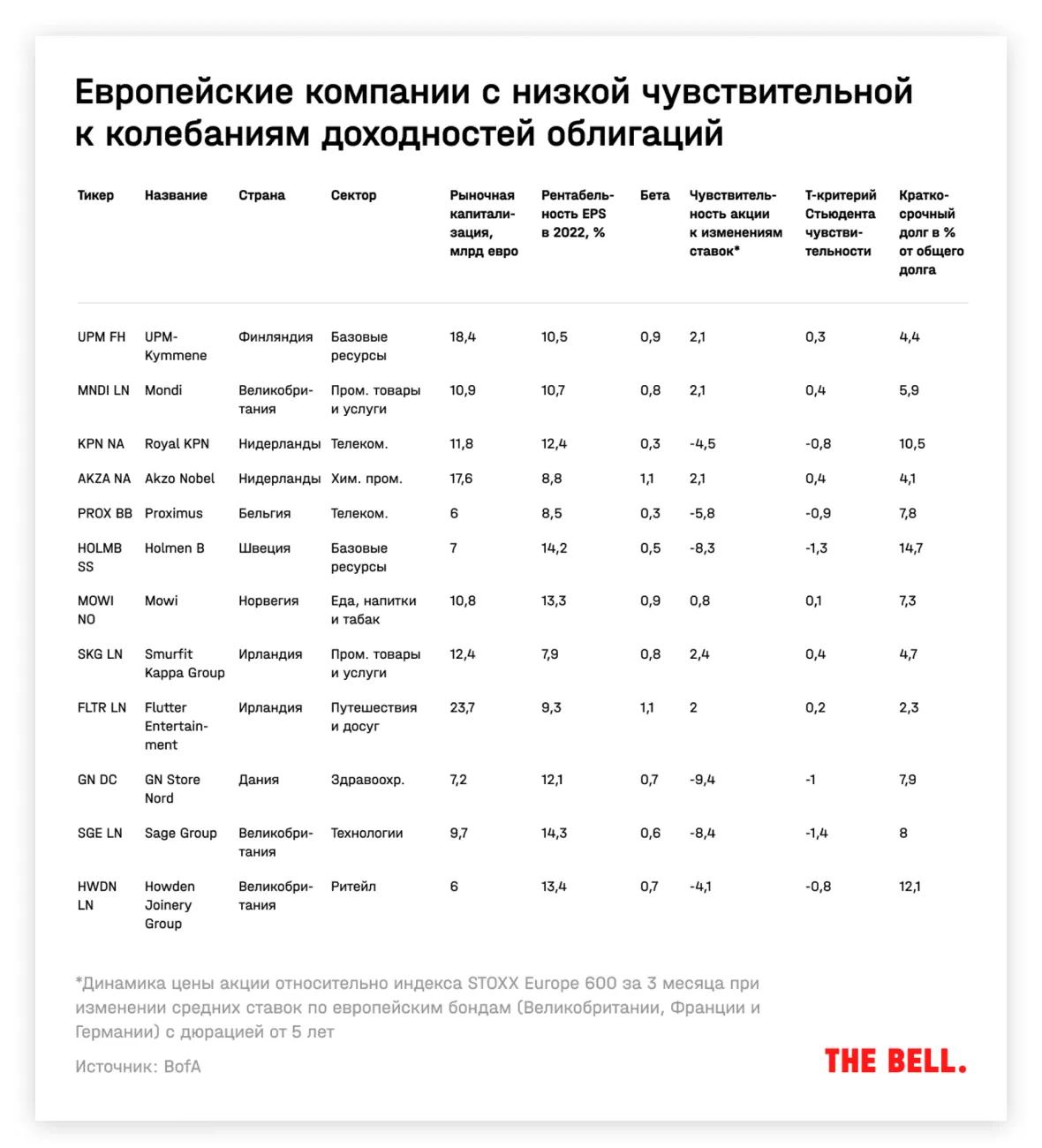 По мнению BofA, ужесточение денежно-кредитной политики в США и рост доходности облигаций могут стать ключевыми факторами для рынка акций в 2022 году. Инвестбанк выбрал 12 европейских акций с исторически низкой чувствительностью к колебаниям доходности облигаций, которые, по мнению аналитиков, помогут снизить риски волатильности из-за повышения ставок.