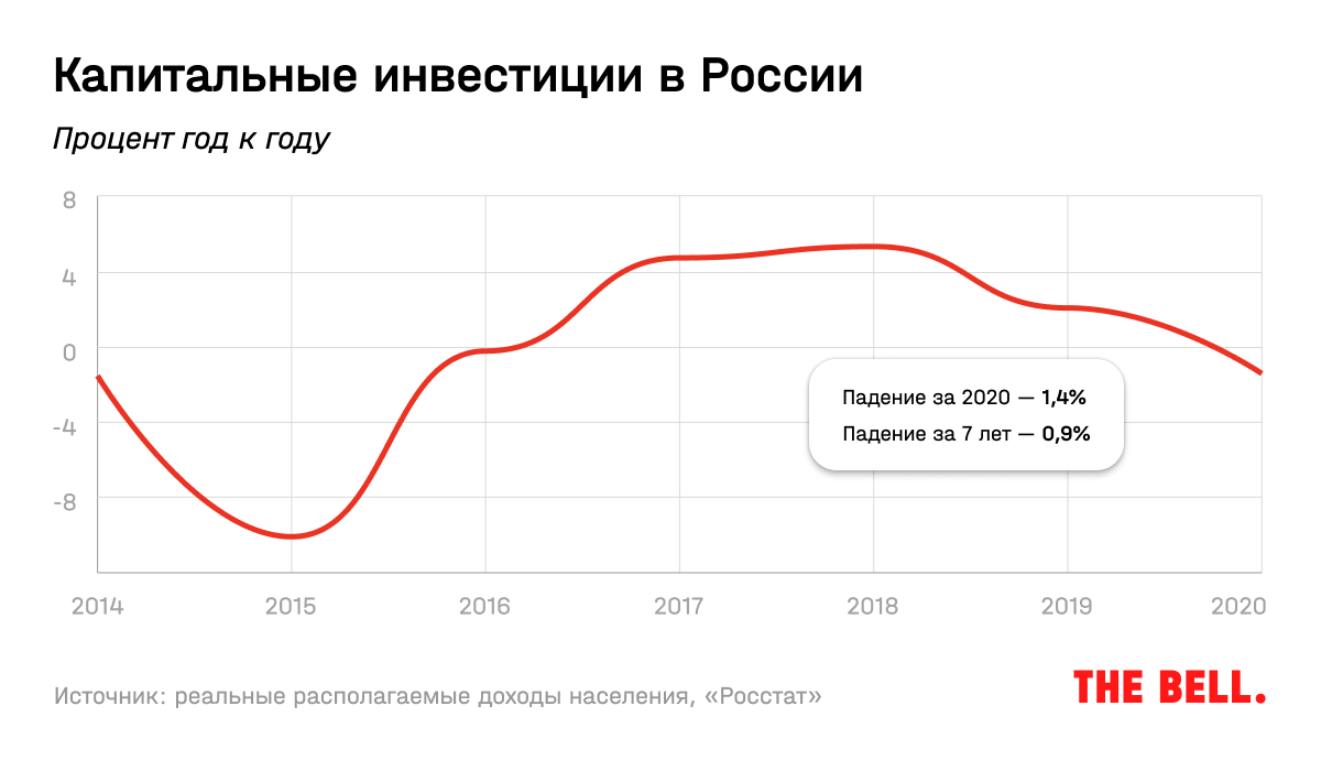 Многие бизнесмены и экономисты в разговоре с The Bell признаются, что впереди еще много испытаний и последствия коронакризиса бизнес будет ощущать еще не один год. Бомбой замедленного действия для бизнеса может стать падение доходов населения, напоминает экономист «Экономической экспертной группы» Александра Суслина. За 2020-й они упали на 3,5%, а за 7 лет — на 10,1%. Бедных стало на 400 тысяч человек больше, несмотря на помощь правительства (семьи с детьми несколько раз получили выплаты, пособие по безработице стало чуть выше и чуть доступнее).