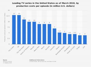 - В 2018 году «Игра престолов» входила в топ самых дорогих сериалов в производстве — съемка одного эпизода обходилась в $10 млн. Больше тратили только на «Отжиг» ($11 млн) и «Корону» ($13 млн) от Netflix и «Скорую помощь» от NBC ($13 млн).